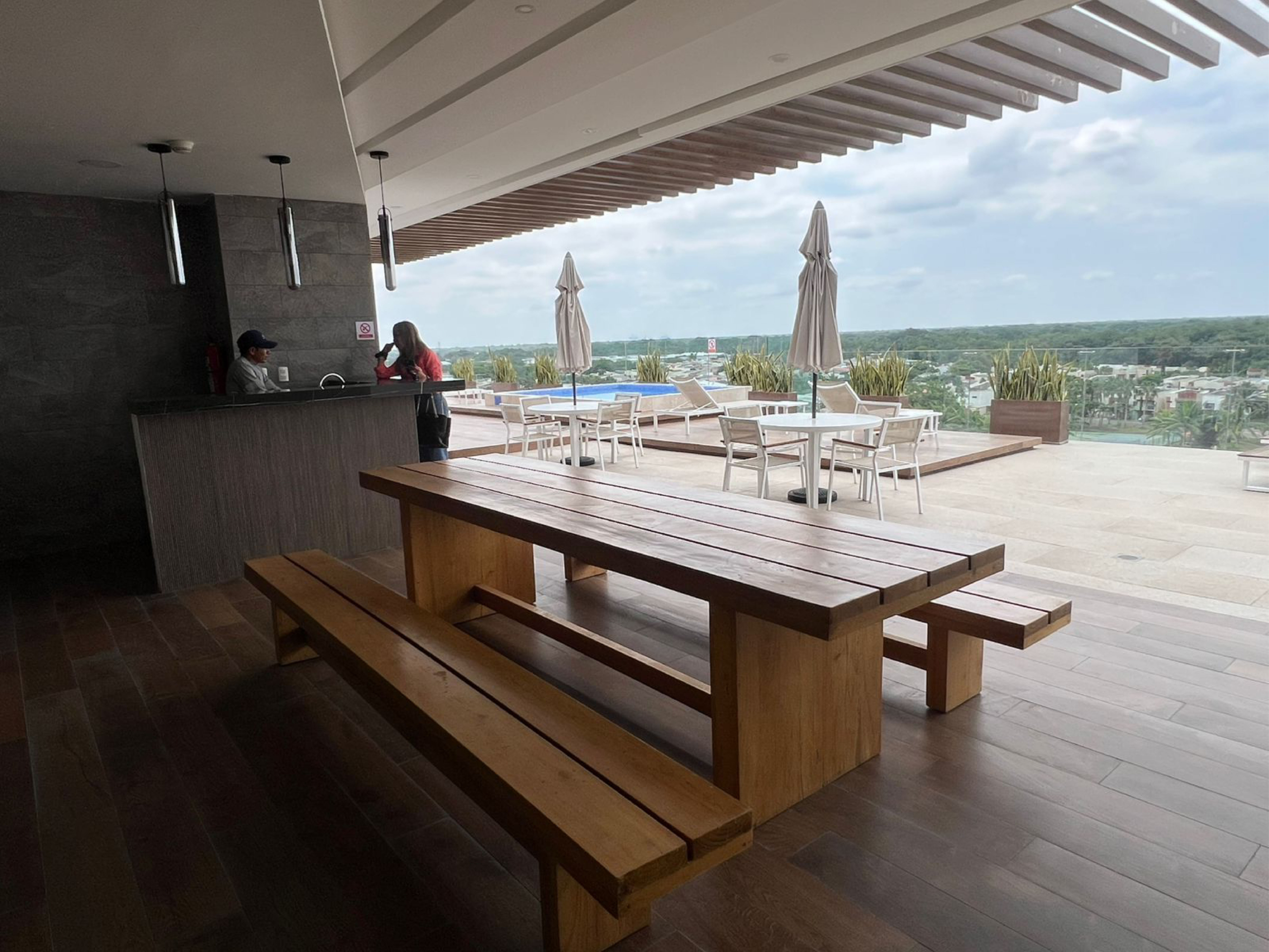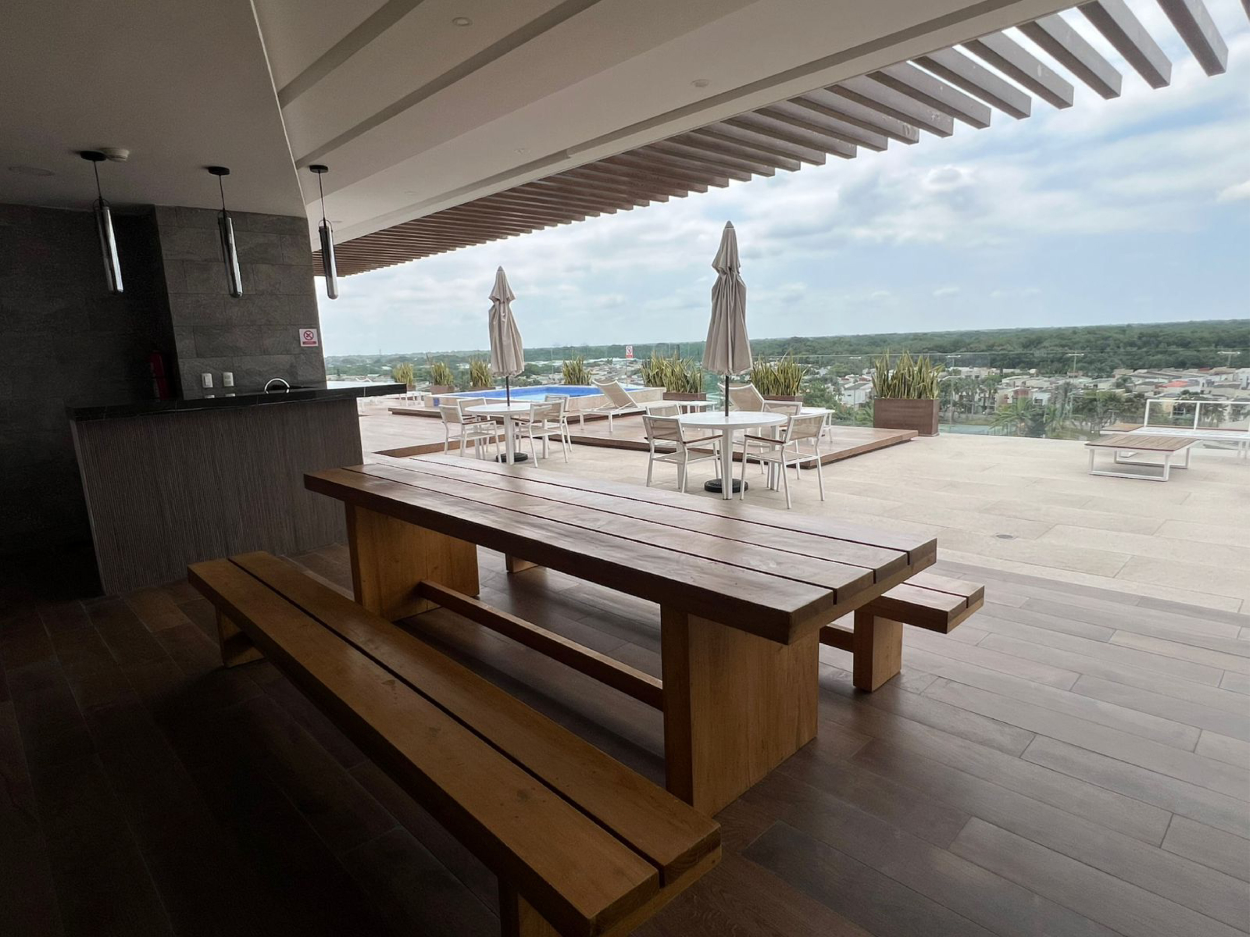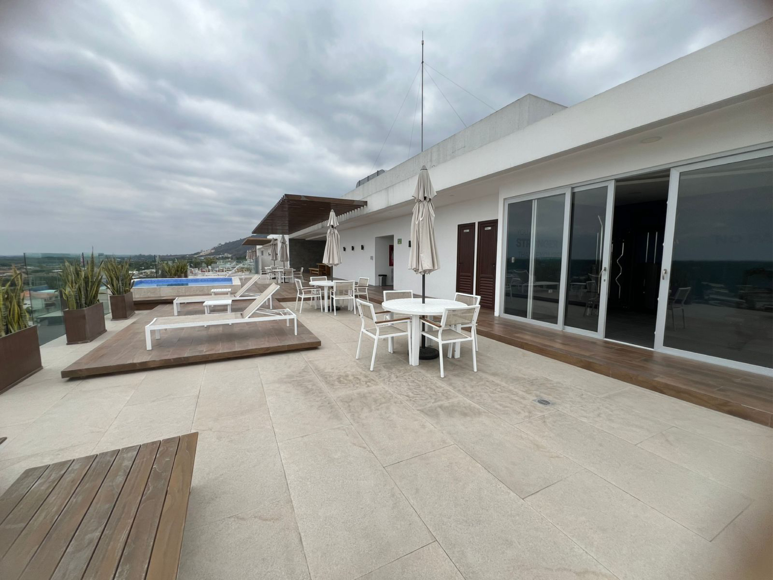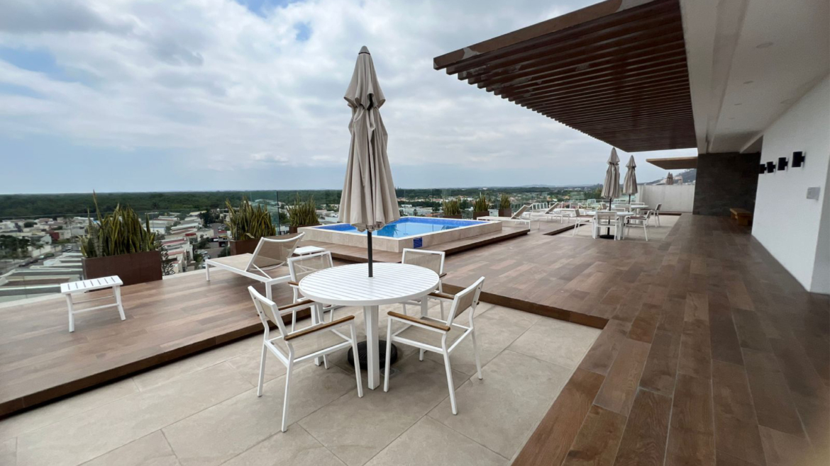 El condominio destaca por su espectacular área social ubicada en la terraza, donde podrás disfrutar de piscina, jacuzzi, zona BBQ, bar y gimnasio, garantizando comodidad, entretenimiento y seguridad.