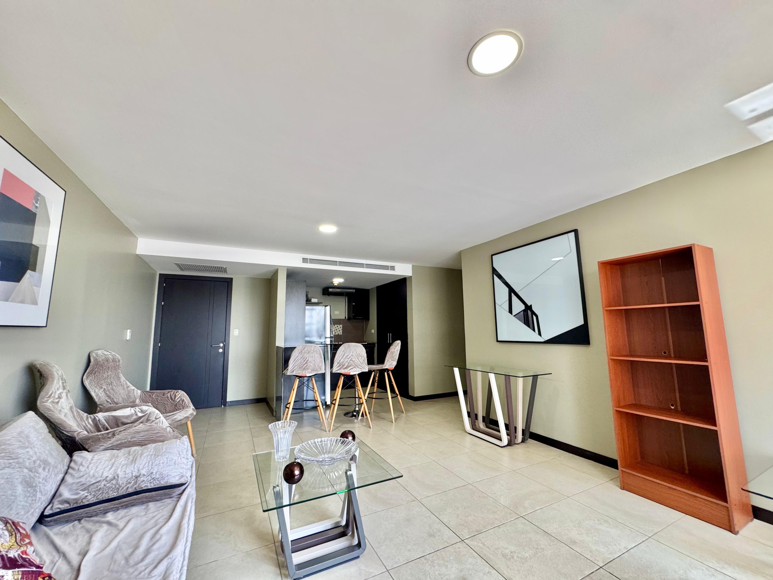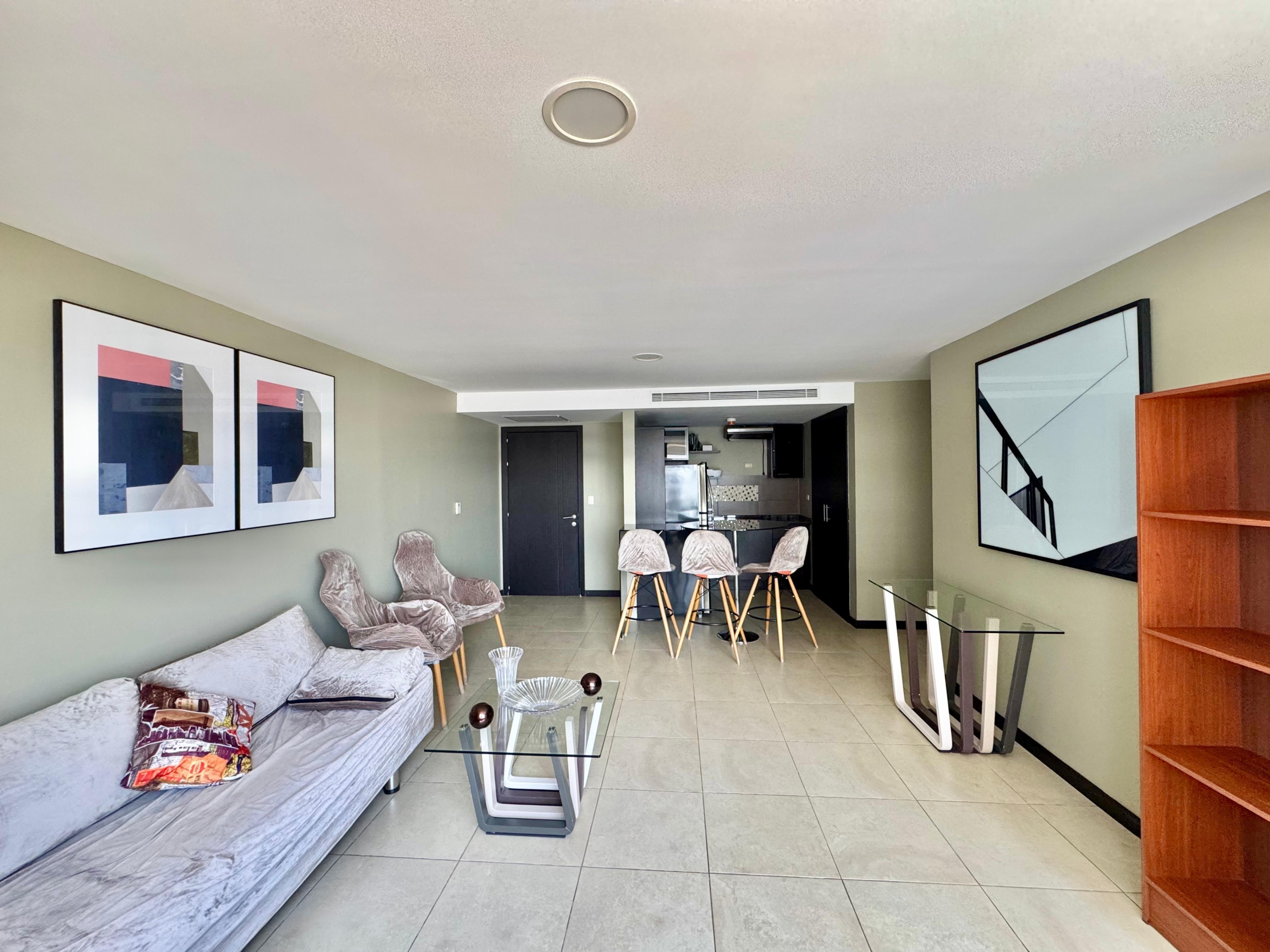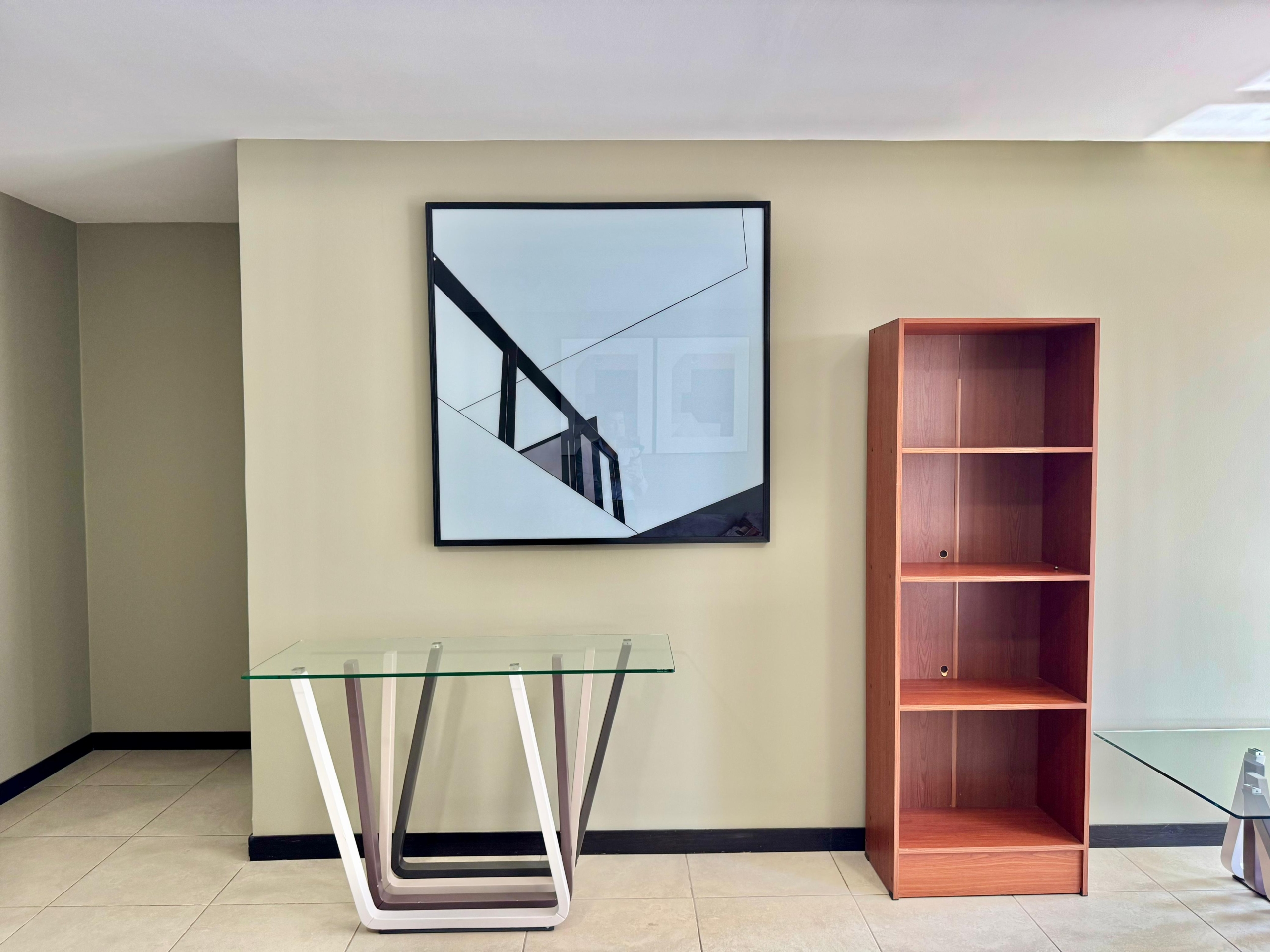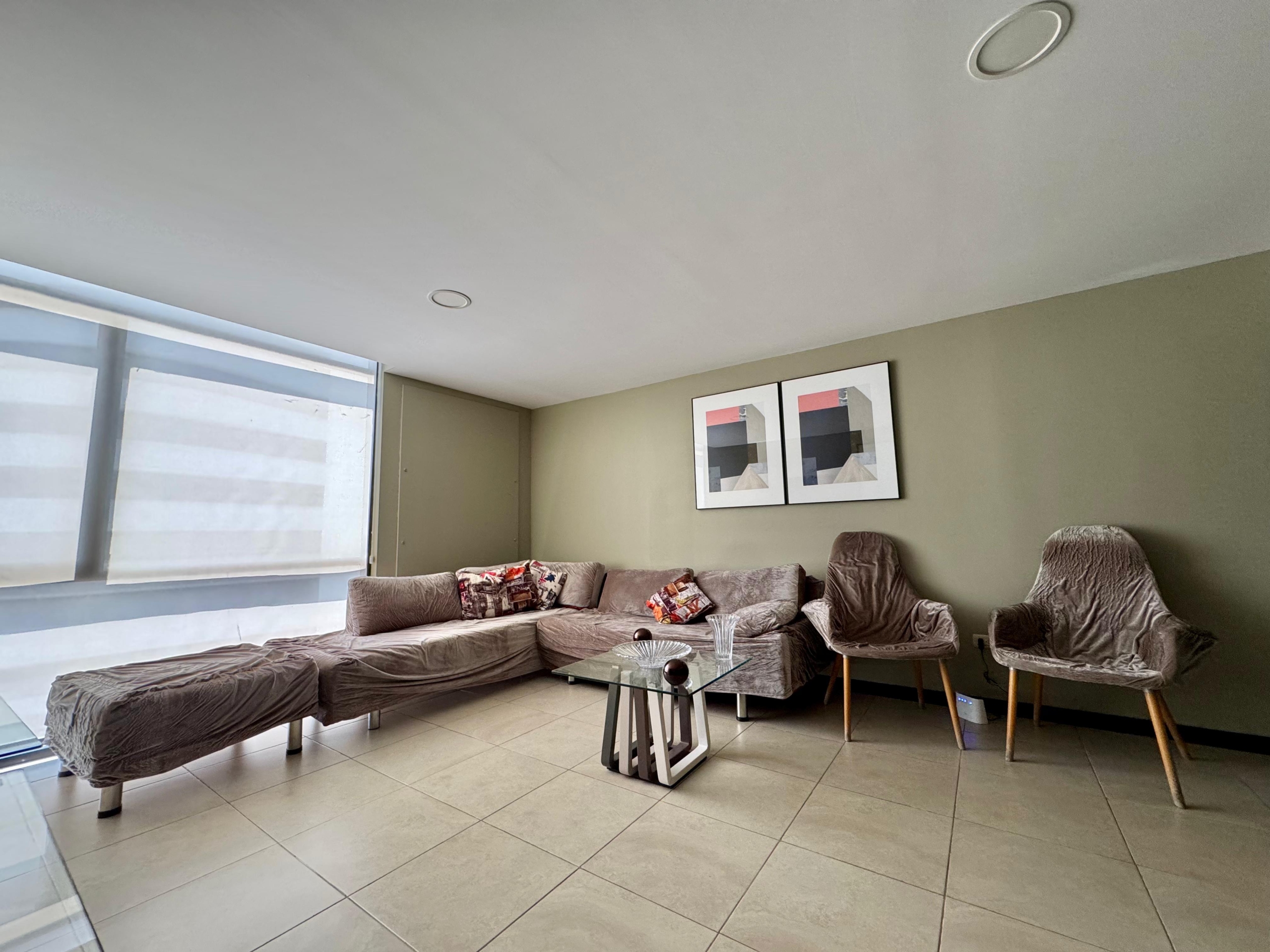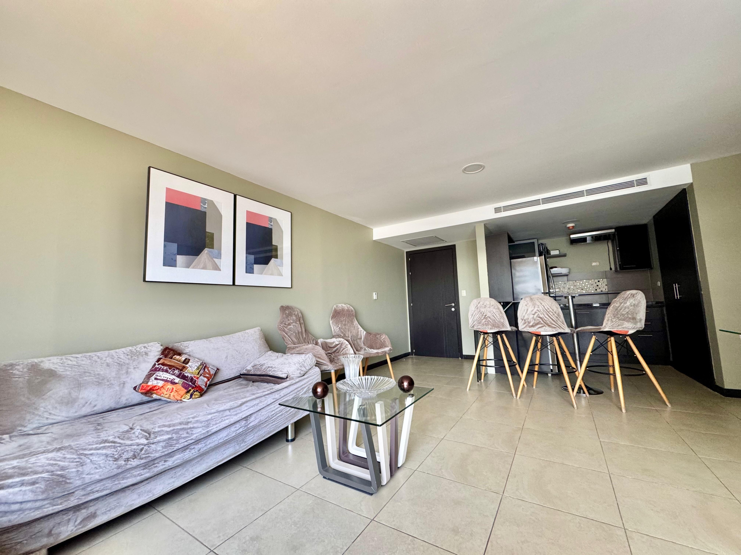 El departamento esta ubicado en el piso 15, tiene vista directa al rio, cuenta con 1 habitación, 1 baño completo, 1 walking closet, cocina, lavandería, sala, piscina en el edificio, gimnasio, bbq, hall servicio, ascensor.