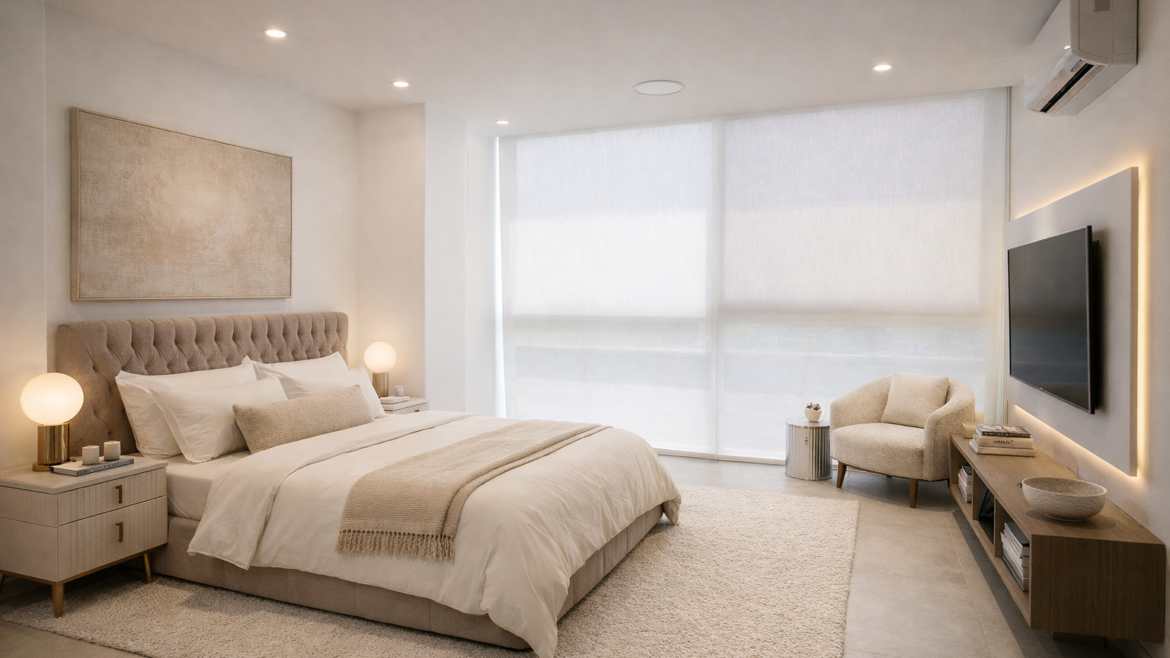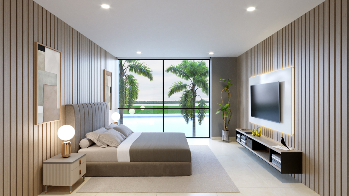 La propiedad cuenta con 4 amplios dormitorios y 4 baños completos, destacando el dormitorio máster con vista panorámica y walking closet. Sus espacios han sido diseñados para brindar comodidad y funcionalidad.