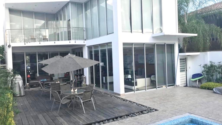 Casa en venta km 1 vía Samborondón con piscina, 4 dormitorios y jardín