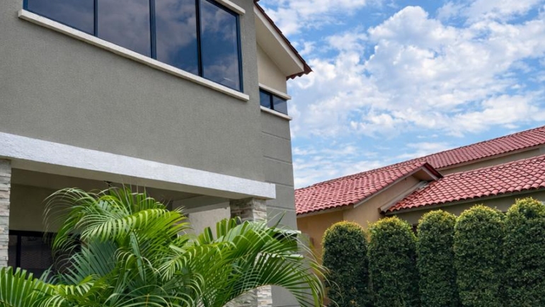 Casa en venta km 1 vía Samborondón con piscina, 4 dormitorios y jardín